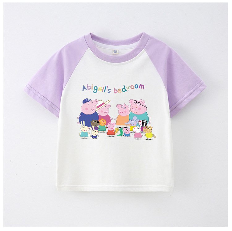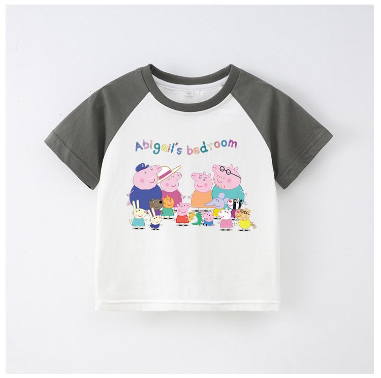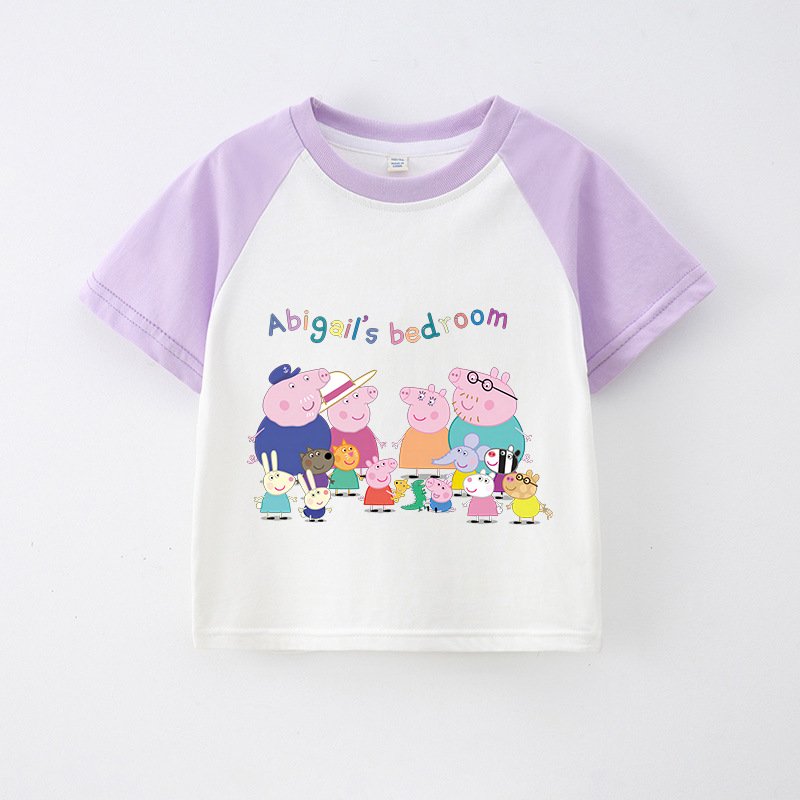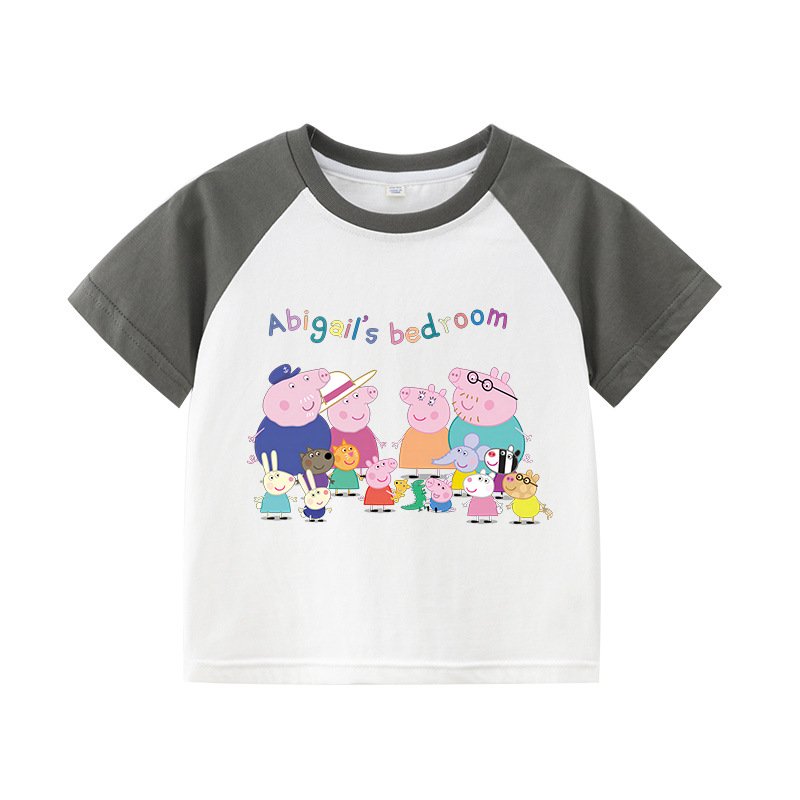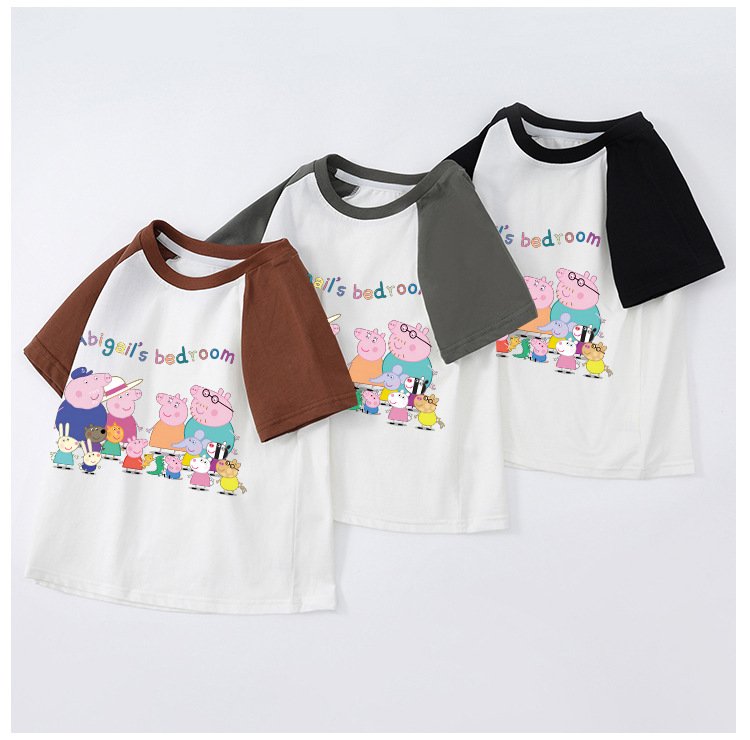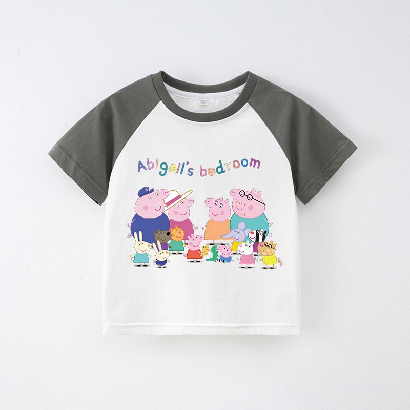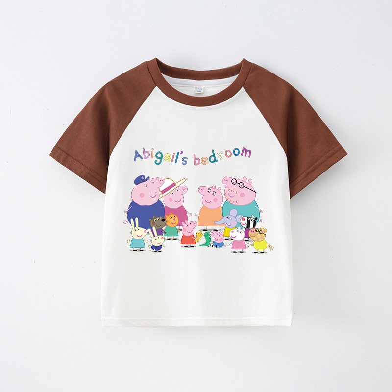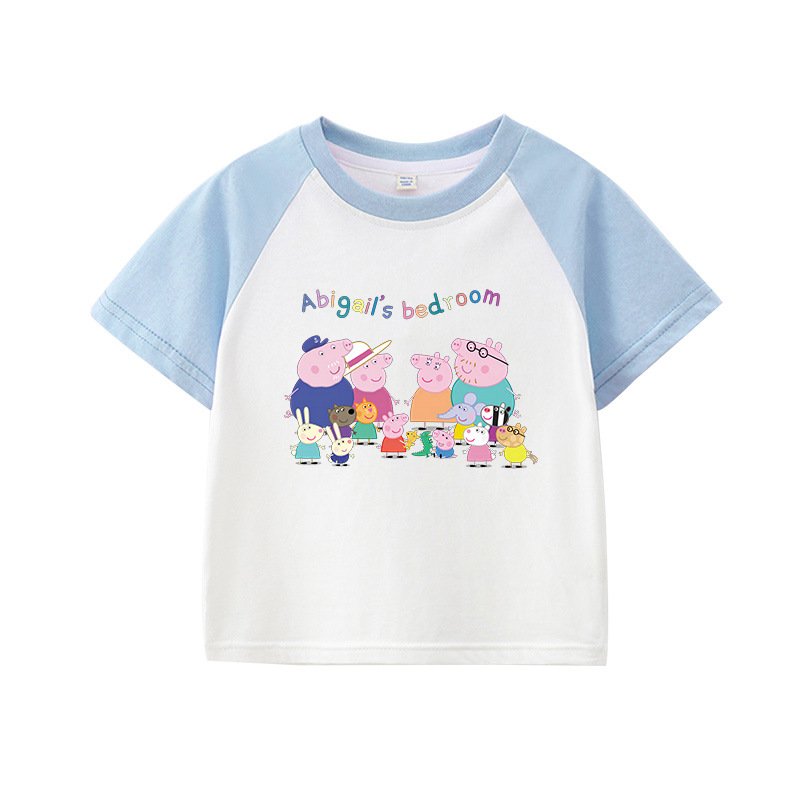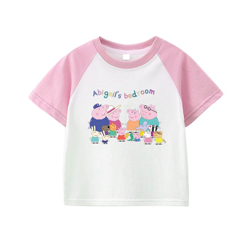 Children’S T-Shirt Short Sleeve Summer Boys T-Shirt Cotton Baby Cartoon Girls Jacket Stitching Raglan Sleeve