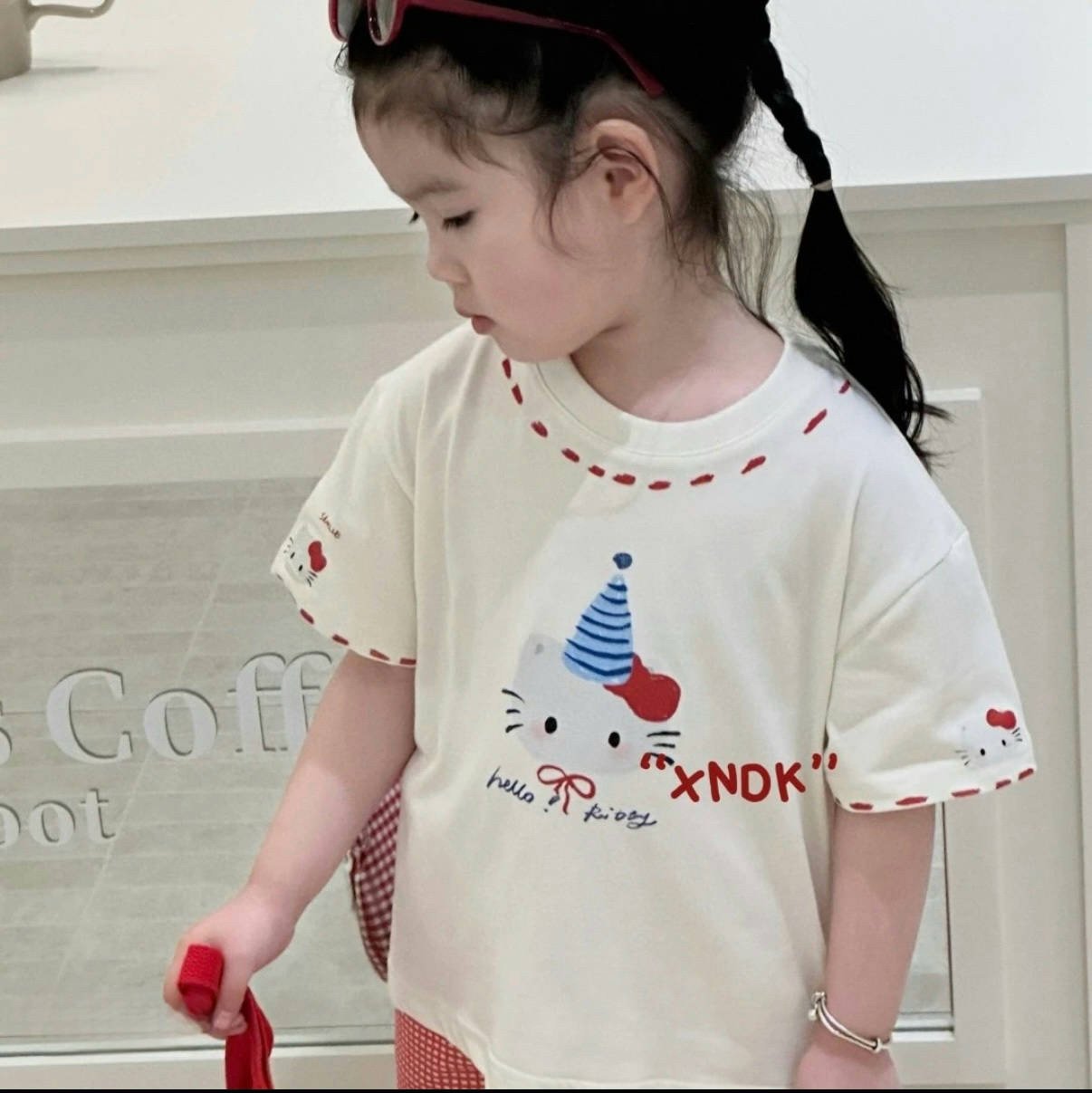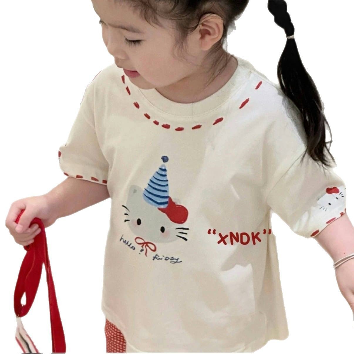 Girls’ Short-Sleeved T-Shirt Children’S Summer 2025 New Style Beautiful Super Good-Looking Top White Cartoon Base Shirt