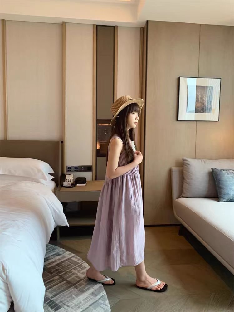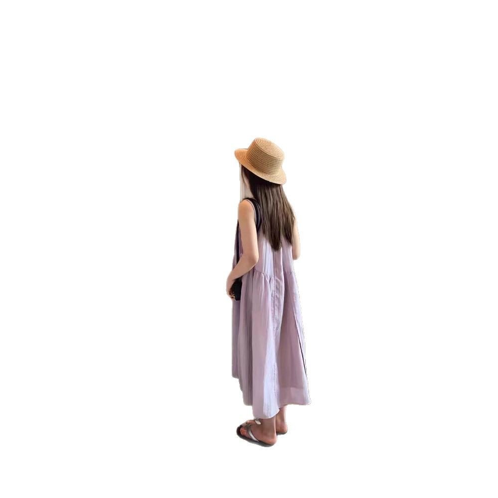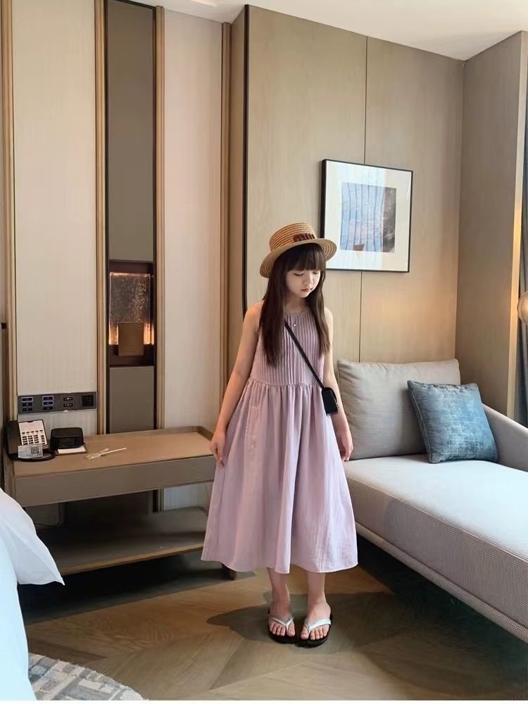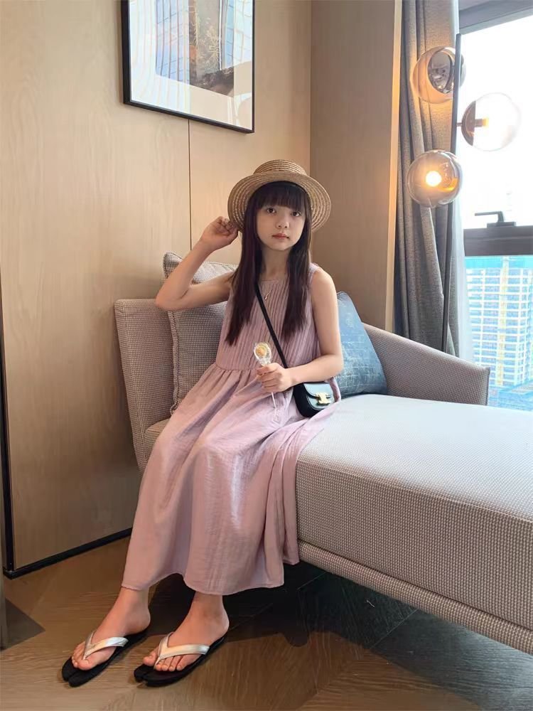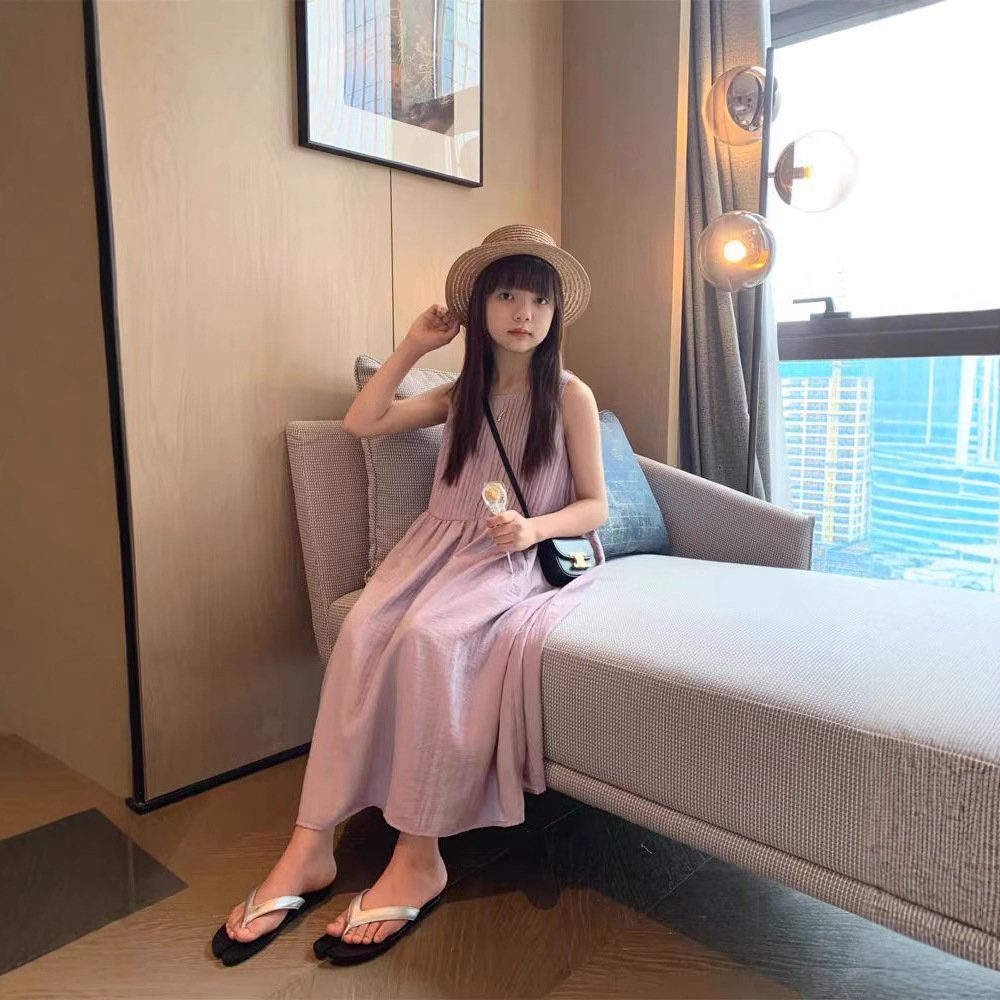 Girls’ Solid Color Fashionable Sleeveless Dress Big Children’S Summer New Gentle Comfortable All-Match Elegant Slip Skirt Trendy