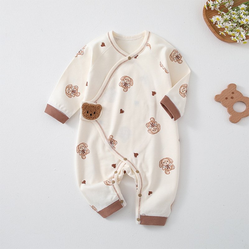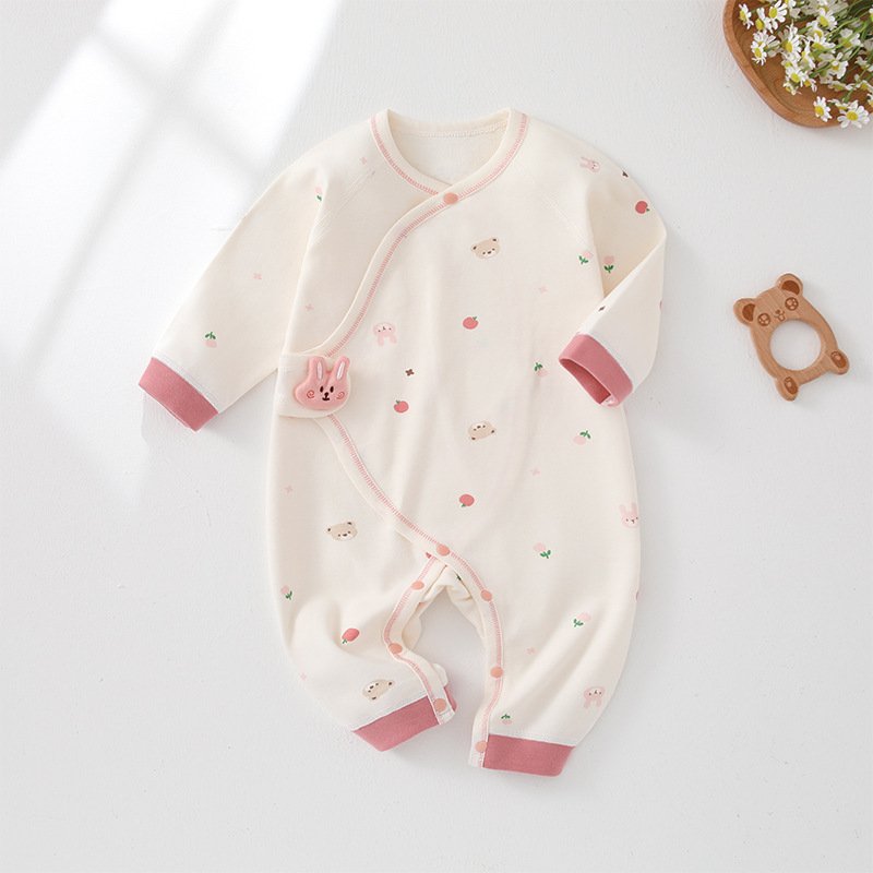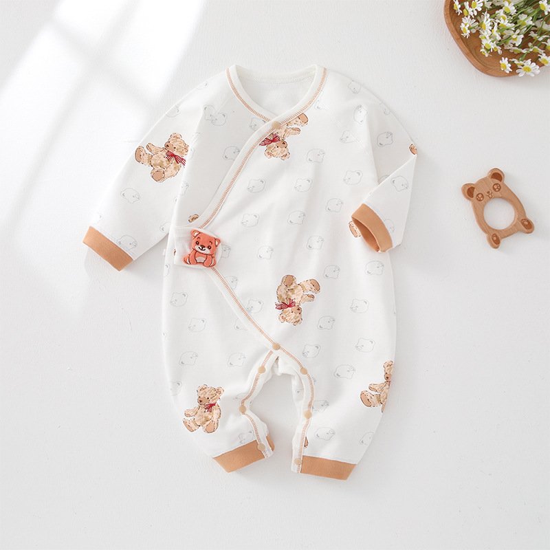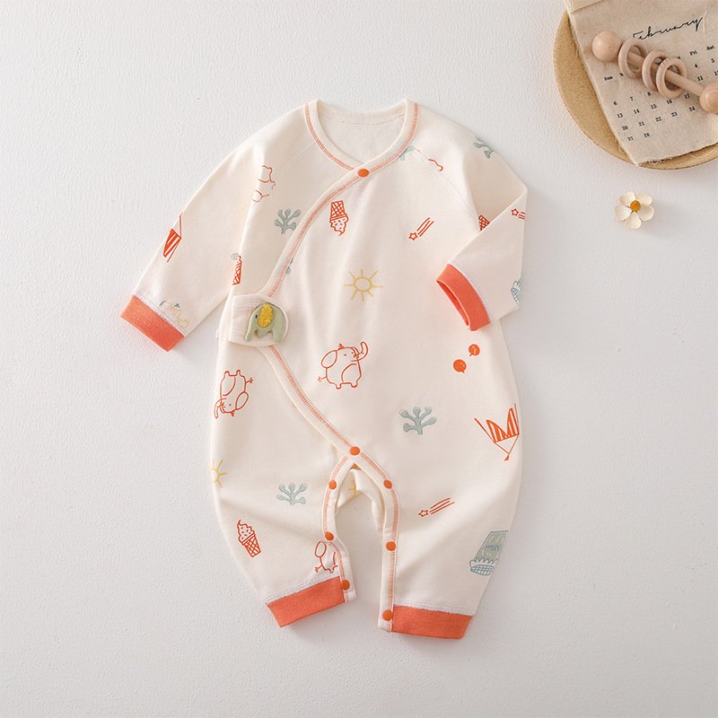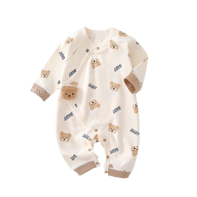 Newborn Romper For Boys And Girls, Side-Opening Velcro, Pure Cotton Seamless Class A Four-Season Monk Suit Crawling Suit For Home